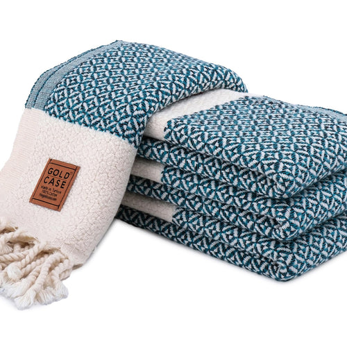 Each towel is meticulously woven, showcasing the soft embrace of premium cotton, ideal for beach or spa.